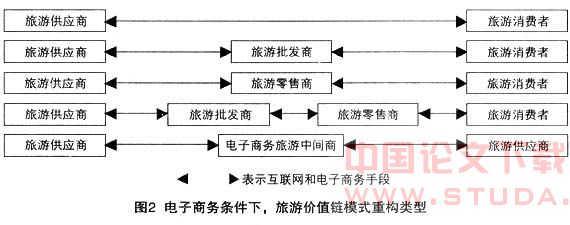 电子商务的发展也造成了旅游中间商的变革,一些基于互联网和电子商务技术的提供信息服务中介的新型旅游中间商应运而生。这些电子商务旅游中间商具有强大的信息服务能力,还能提供强大的检索能力和咨询能力,并且为旅游价值链成员之间进行网上交易提供平台。对于电子商务旅游中间商来说,加强与传统旅游企业的合作,将能给自己赋予更强的生命力。